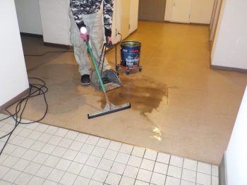 床の付着物も丁寧に落とします。